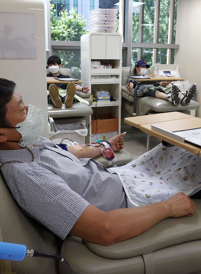 세계 헌혈자의 날인 14일 오전 서울 종로구 헌혈의집 광화문센터에서 시민들이 헌혈하고 있다.