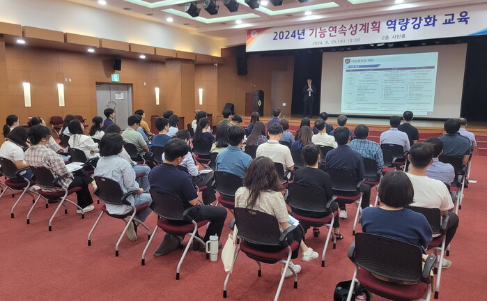 진주시는 25일 시청 시민홀에서 재난사고에 신속히 대비하고자 기능연속성계획 핵심 기능 인력 20개 부서 직원을 대상으로 ‘기능연속성계획 역량강화 교육’을 실시했다.
