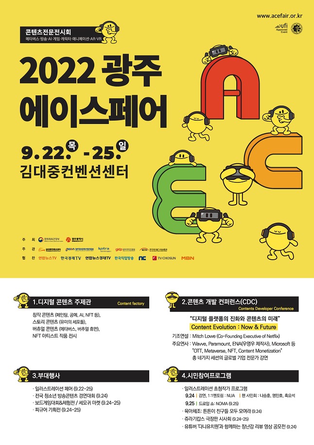 2022 광주 에이스 페어는 광주광역시와 문화체육관광부가 주최하고 김대중컨벤션센터, 광주정보문화산업진흥원, 한국케이블TV방송협회, 광주디자인진흥원, 대한무역투자진흥공사(KOTRA)가 주관하는 행사로 올해로 17회째를 맞았다.