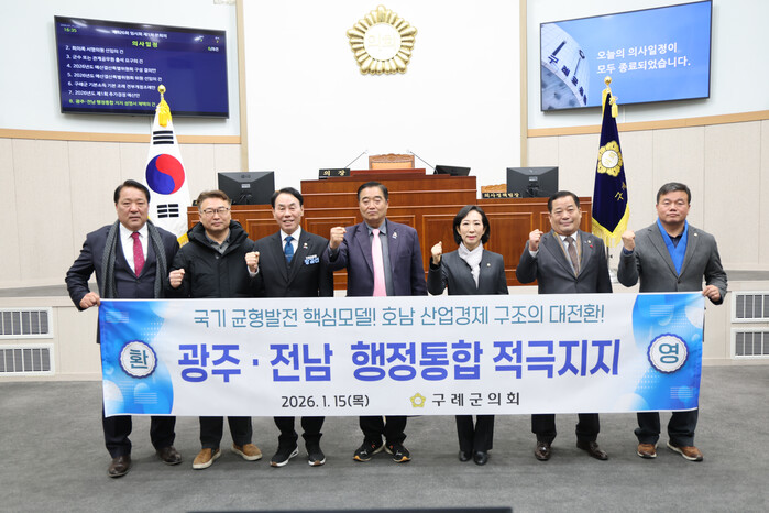 장길선 의장은 “호남의 경제와 산업 구조를 근본적으로 변화시킬 광주·전남 행정통합을 구례군민과 함께 적극 지지한다”며 “섬진강유역환경청 등 공공기관 유치를 염원해 온 구례군민의 기대에 부응하는 중앙정부의 확고한 의지를 환영한다”고 밝혔다.
