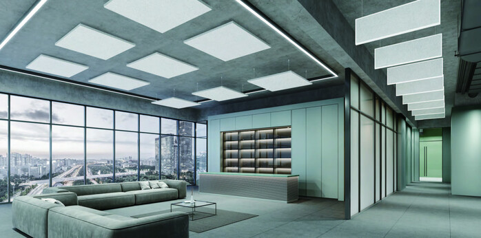 흡음 계수를 측정하는 대표적인 지표인 NRC(Noise Reduction Coefficient) 값 0.5를 충족하는 동사의 천장재 제품인 클라우디아를 활용해 개발된 제품으로 소리의 울림을 효과적으로 개선하고 음향 효과를 향상시켜 쾌적한 음환경을 제공한다.