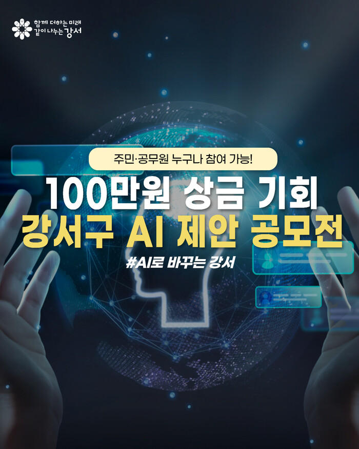 [시민일보 = 박소진 기자] 강서구(구청장 진교훈)가 인공지능(AI) 기술을 활용한 행정 혁신과 주민 체감형 서비스 발굴을 위해 ‘2025 AI 제안 공모전’을 개최한다.