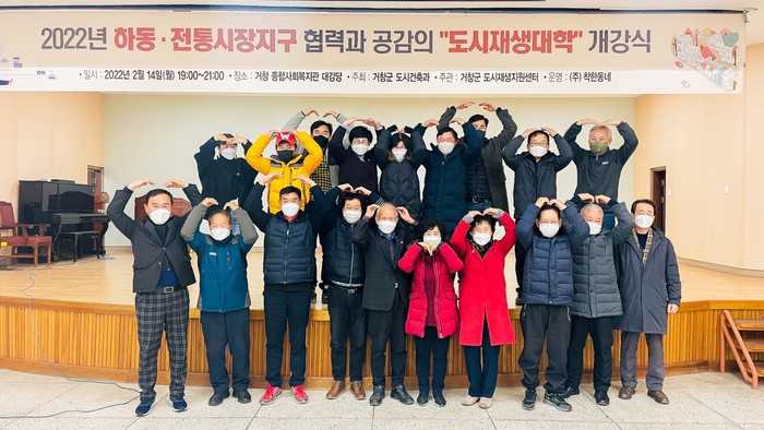 거창군은 지난 14일 거창군 종합사회복지관 3층 대강당에서 하동-전통시장지구에 대하여 도시재생에 대한 이해와 주민 역량 강화를 위한 도시재생대학 개강식을 가졌다.