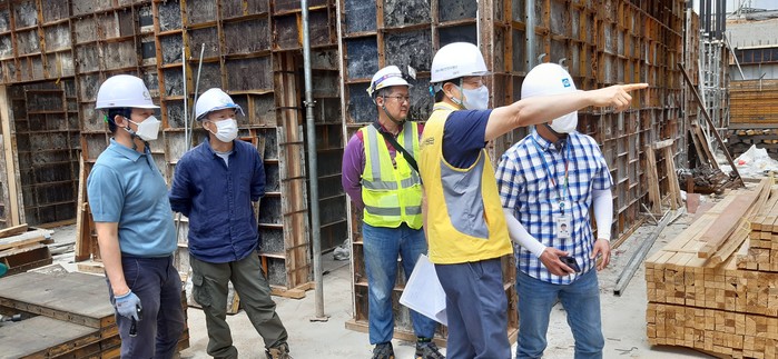 경기 부천시는 최근 2022년 우기 및 폭염에 대비해 지역내 건축현장에 대한 안전관리 실태를 점검하고 있다. 주요점검 사항은 공사현장 및 주변 침하, 변형, 작업발판 안전성 등이다. 사진은 최근 시 관계자들이 지역내 건축현장에서 안전관리 실태를 점검하고 있는 모습. (사진제공=부천시청)
