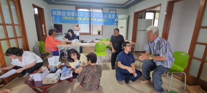 방문간호·재활·한의약 서비스는 고혈압·당뇨병·관절염 등 복합 만성질환자가 많은 마을 경로당 3개소를 지정하여 여름 동안 제공할 예정이다.