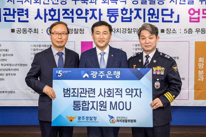 [시민일보 = 이대우 기자] 광주은행(은행장 고병일)은 최근 광주경찰청에서 광주경찰청ㆍ광주자치경찰위원회와 범죄 관련 사회적약자 통합 지원 시스템 구축을 위해 업무협약을 체결했다고 밝혔다.