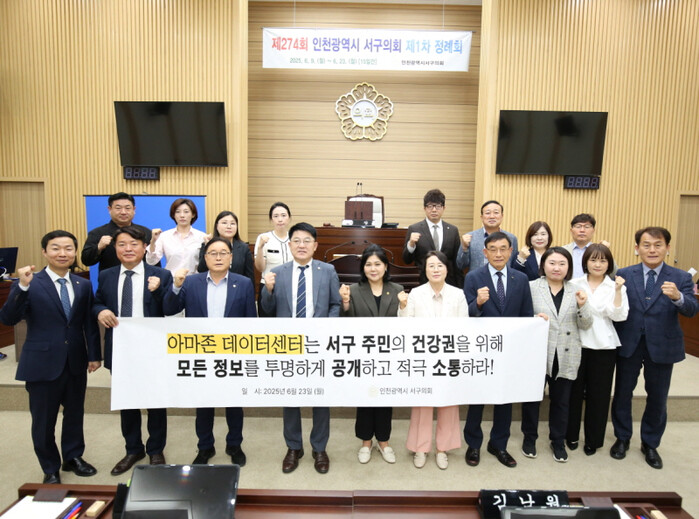 또 “주민 건강권을 최우선 가치로 두고 소통 및 투명한 정보공개를 통해 주민 불안 해소와 안전 확보에 앞장서겠다”고 밝혔다.이번 결의안은 아마존 한국본사, 인천시의회 의장 및 시장, 서구청장, 인천 각 군·구 의회 및 단체장에게 이송될 예정이다.