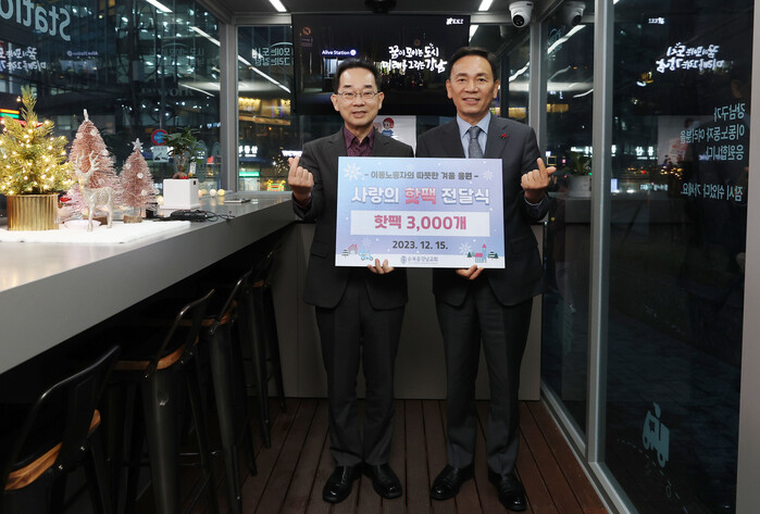 [시민일보 = 이대우 기자] 서울 강남구(구청장 조성명)가 최근 이동노동자 쉼터 2호점에서 순복음강남교회와 함께 ‘사랑의 핫팩 전달식’을 개최했다.