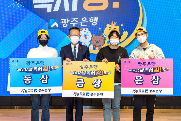 ‘광주은행 Let’s 갓생, 독서킹!’대회에서 금상을 차지한 학생에게는 10만원 상당의 도서문화상품권, 은상과 동상을 수상한 학생에게는 각각 5만원과 3만원 상당의 도서문화상품권을 전달했다.