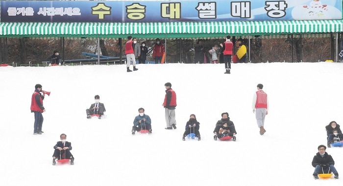 지난해 12월 23일 개장한 수승대 눈썰매장은 120m 길이의 슬로프와 무빙워크가 설치되어 있으며, 코로나19 방역 지침 완화와 수승대 출렁다리 개장으로 창원·거제·진주 등 경남 일원과 대전·광주·대구 등지에서 찾아온 방문객 인원은 지난해 대비 2.5배 증가했다.