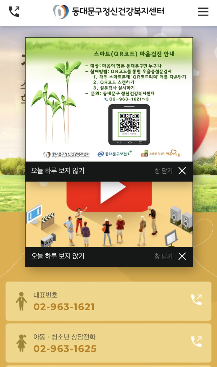 | ▲ 새로 개편된 동대문구정신건강복지센터 홈페이지 모바일버전. (사진제공=동대문구청) |