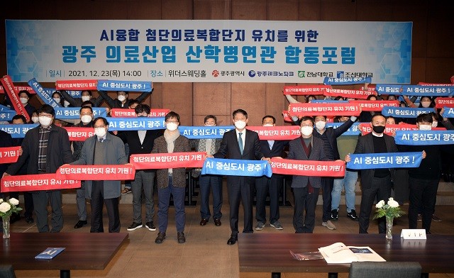 [광주=정찬남 기자] 광주광역시는 23일 서구 위더스웨딩홀에서 ‘광주AI융합 첨단의료복합단지(이하‘첨복단지’) 유치를 위한 의료산업 산학병연관 합동포럼‘을 열고 본격적인 유치 활동에 나섰다.