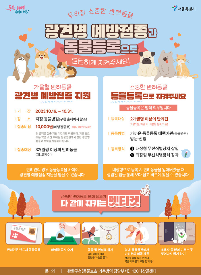 선착순으로 접종을 지원하므로 동물병원에 미리 문의한 후 방문을 권장한다.