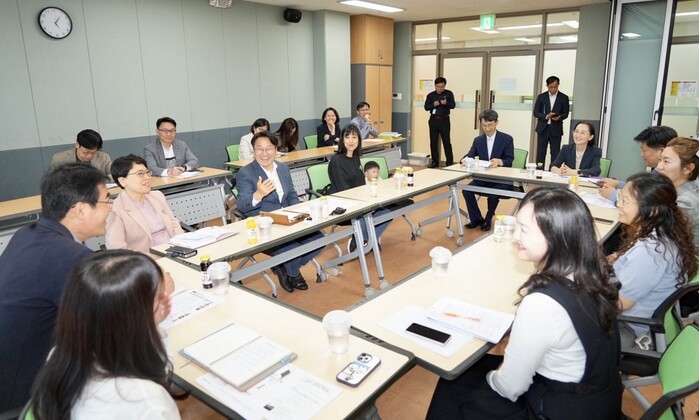 | ▲ 강기정 광주광역시장이 8일 오후 북구 꿈나무사회복지관에서 열린 정책소풍에 참석해 시민 주도 틈새돌봄 실천, 여성의 사회참여 활성화, 공동육아 문화 확산 등을 중점 논의했다. /광주광역시 제공 |