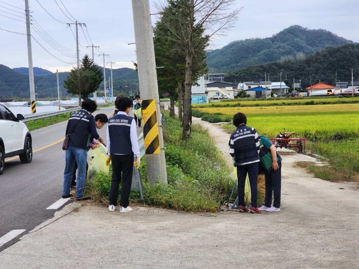 이날 참여한 여성민방위기동대원 20명은 쌍책면 소재지로부터 진정리에 이르는 도로변에 버려진 생활쓰레기와 유리병, 페트병등을 수거했다.