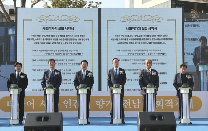 700여명 참가자들은 사회적가치 실천 서약을 통해 인구감소, 지역소멸 등 당면한 문제 해결을 위해 사람과 환경을 중시하고 연대와 배려를 실천하는 사회적경제 활성화를 위해 사회적경제인과 도ㆍ군민 모두가 함께 노력할 것을 다짐해 관심을 모았다.