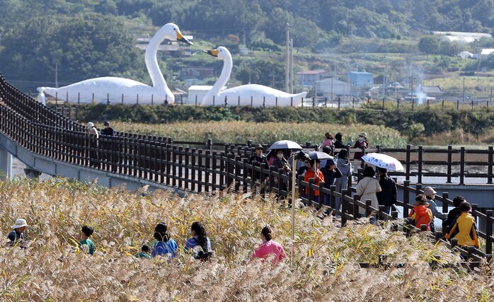 갈대음악콘서트, 가을미니콘서트, 버블&벌룬쇼 등 다채로운 무대가 이어지며 축제장 곳곳에서는 분재ㆍ국화ㆍ동백 전시와 AI 작품 전시회, 생태홍보관에서 사진전이 열려 볼거리를 더한다.