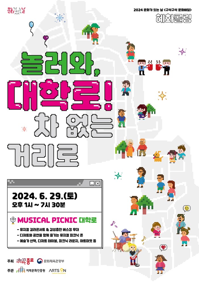 [시민일보 = 이대우 기자] 오는 29일 종로구(구청장 정문헌)가 ‘놀러와, 대학로! 차 없는 거리로’를 개최한다.