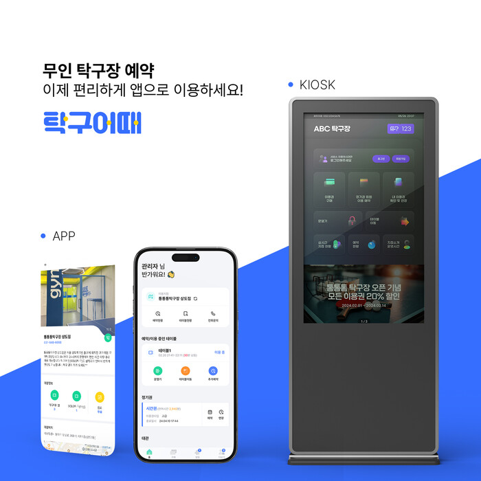 무인 키오스크 설치로 관리자는 언제 어디서나 휴대폰이나 컴퓨터를 통해 매장 관리가 가능하다.매출과 회원 관리, 테이블 및 이용권 설정, 쿠폰 설정 등 매장의 다양한 운영 상황을 손쉽게 조절할 수 있다. 또한, 고객은 예약 시간 10분 전부터 입장이 가능해, 일찍 도착한 고객도 대기할 수 있다. 추가적으로, 탁구장 키오스크는 높은 사용자 접근성과 운영 효율성을 위해 설계되었다.