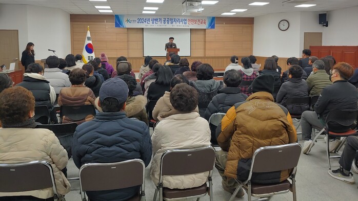김용배 일자리경제과장은 “이번 교육을 통해 안전의식을 함양하여 2024년 새해도 모든 공공일자리 참여자분들이 단 한 건의 사고도 없이 안전하게 업무를 수행할 수 있기를 바란다”고 밝혔다.