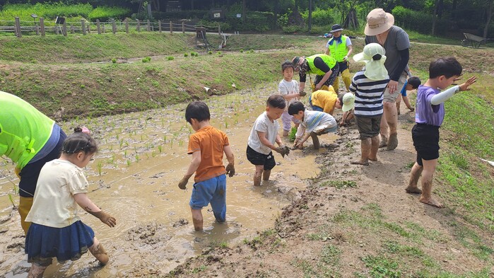 [시민일보 = 이대우 기자] 서울 강동구(이수희 구청장)가 13일, 일자산 근린공원내 다랭이논(둔촌동 산119)에서 관내 어린이집 아동을 대상으로 모내기 체험을 진행한다고 밝혔다.