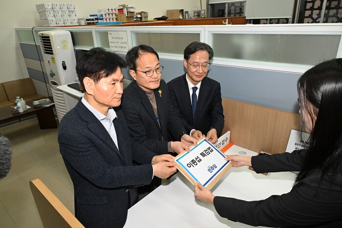 이날 민주당 박주민 원내수석부대표, 법제사법위원회 간사 소병철 의원, 외교통일위원회 이용선 외통위 간사 등은 국회 의안과에 이종섭 특검법을 접수했다.
