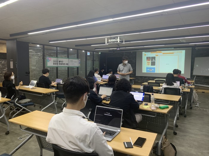 | ▲ 사회적경제기업을 위해 온라인 판로개척 교육이 진행 중인 모습. (사진제공=동작구청) |