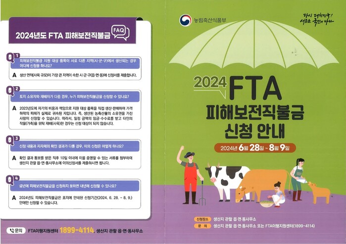 지원 대상은 지역내 한우, 육우, 한우 송아지 생산 농가로, 농업경영체에 등록돼 있고 한ㆍ캐나다 FTA 발효일(2015년 1월1일) 이전부터 해당 축종을 생산해 온 농가 중 2023년도에 직접 생산ㆍ판매해 가격하락 피해를 입은 농업인 및 농업법인이다.