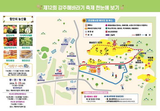 아울러 이번 축제기간에는 부대행사로 먹거리 장터, 갤러리, 농‧특산물 직거래장터, 마을장터 등과 함께 7월 6일(토)~7일(일) 오후 2시~4시에는 해바라기 1단지 내에서 사진 촬영 이벤트도 열어 축제를 찾는 이들의 많은 관심을 끌 것으로 기대된다.