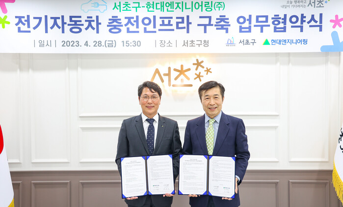 [시민일보 = 이대우 기자] 서울 서초구(구청장 전성수)가 현대엔지니어링(주)과 전기자동차 충전인프라 구축 업무협약(MOU)을 체결하고 충전인프라 확충에 나섰다.