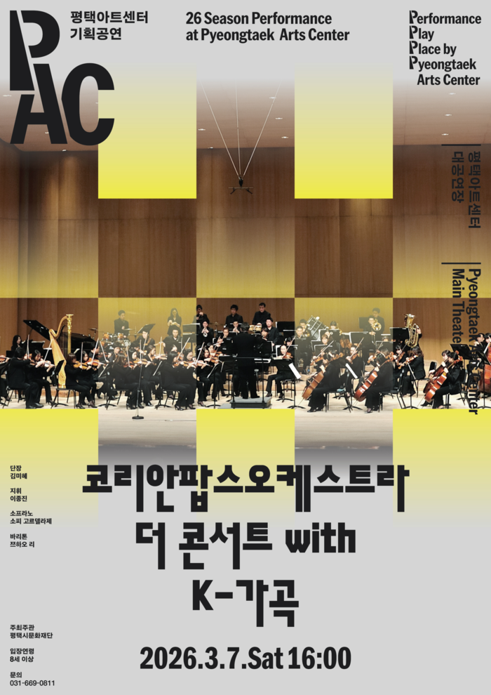 3월 기획공연의 포문은 코리안 팝스 오케스트라(단장 김미혜)의 ‘코리안 팝스 오케스트라 더 콘서트 with K-가곡’이 연다.