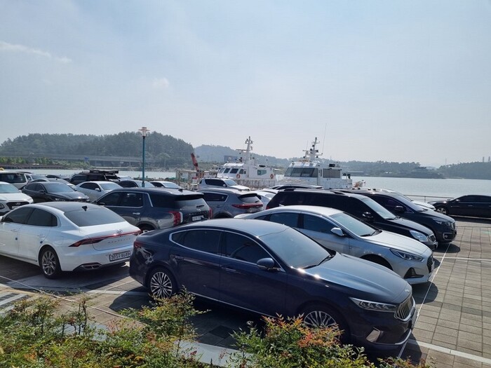 | ▲ 제주와 신안군 신의, 장산도를 운항하는 해남군 문내면 소재 우수영 항에 지난 추석연휴 기간 귀성객이 대거 몰리며 주차장을 꽉 메우고 있는 차량들 / 해남군 제공 |