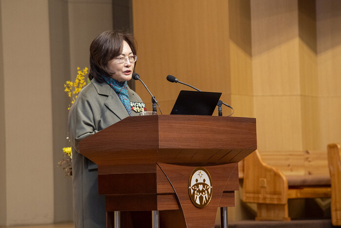 | ▲ 박희영 구청장이 남산시민대학에서 노인교실 개강식을 진행하고 있다. (사진=용산구청 제공) |
