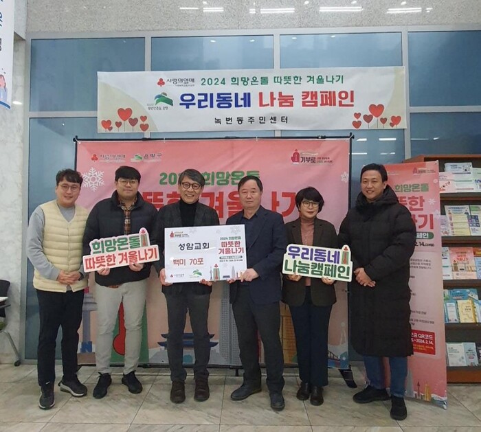 정귀수 녹번동장은 “해마다 잊지 않고 백미를 기부해 주셔서 취약계층에 큰 도움이 되고 있다”며 “따뜻한 겨울나기를 통한 기부활동으로 지역사회에 선한 영향력을 펼쳐주신 성암교회 담임목사님과 모든 관계자분에게 감사의 말씀을 드린다”고 밝혔다.