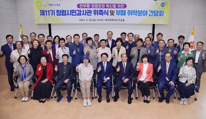강기정 광주광역시장은 28일 시청 무등홀에서 제11기 청렴시민감사관 50명에게 위촉장을 수여했다.