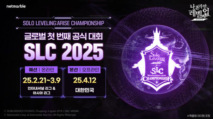[시민일보 = 여영준 기자] 넷마블은 <나 혼자만 레벨업:어라이즈>(개발사 넷마블네오)의 첫 글로벌 공식 대회 ‘나 혼자만 레벨업:어라이즈 챔피언십 2025’ 예선전을 2월 21일부터 시작한다고 12일 밝혔다.