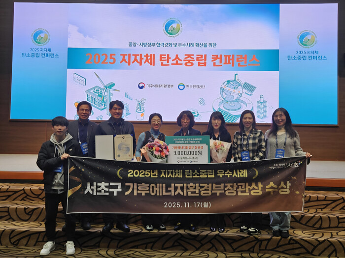 [시민일보 = 박소진 기자] 서울 서초구(구청장 전성수)가 17일 기후에너지환경부가 주최한 ‘2025년 지자체 탄소중립 컨퍼런스’에서 탄소중립 이행 우수 지방자치단체로 선정되며 기후에너지환경부 장관상을 수상했다.