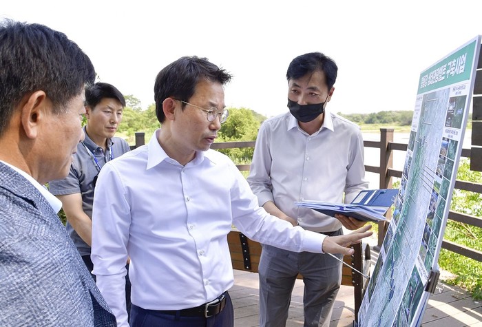 [광주=정찬남 기자] 문영훈 광주광역시행정부시장이 3일 오후 광산구 장록 국가습지 보호지역을 방문해 황룡강 생태관광벨트 구축사업 관련 추진사항을 점검하고 있다./광주광역시 제공