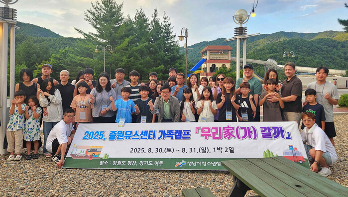 [성남=오왕석 기자] 성남시청소년청년재단(대표이사 양경석) 중원유스센터는 8월 30일부터 31일까지 1박 2일간 강원도 평창과 경기도 여주에서 가족 캠프 『우리家(가) 갈까』를 운영했다고 밝혔다. 이번 캠프는 부모와 자녀가 함께 여름의 끝자락에서 휴식과 소통의 시간을 보내며 가족 간 공감대를 형성할 수 있도록 마련됐다.