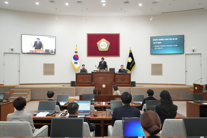 | ▲ 제266회 중랑구의회 임시회 제1차 본회의가 진행되고 있다.(사진=중랑구의회 제공) |