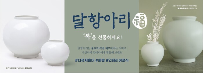 ‘달항아리’는 흰 바탕색의 둥그런 형태가 보름달을 닮았다고 해, 이름이 붙여진 것으로 알려져 있고 하늘과 땅과 사람을 이어주고 복과 명을 준다는 의미로 오래전부터 내려오는 한국 고유의 항아리다.