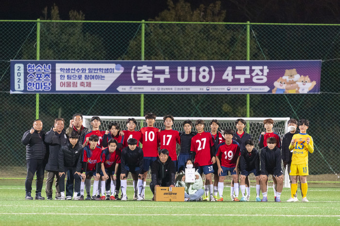 이번 2021 청소년 스포츠 한마당은 대한체육회가 주최하고 경상남도체육회가 주관한 대회로 축구는 초등부 13개팀, 중등부 9개팀, 고등부 4개팀 400여 명이 참가해 2일간 치뤘다.