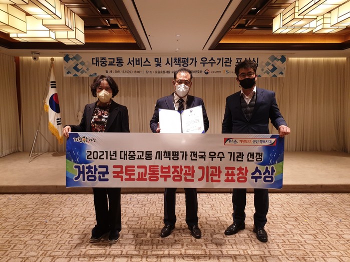 거창군은 국토교통부가 주관한 ‘2021년도 대중교통시책평가’에서 전국 77개 군단위 중 3위를 차지하여 지난 15일 국토교통부장관 기관표창을 수상했다고 밝혔다.