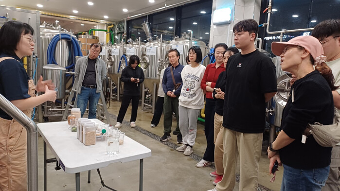 경기 이천시 관고동 주민자치학습센터가 최근 10월 ‘로망학습’으로 지역내 수제맥주 ‘브루어리 을를’에서 투어를 진행했다. 이번 학습에는 시민 12명이 참여했다. 사진은 투어가 진행되는 모습. (사진=이천시청 제공)