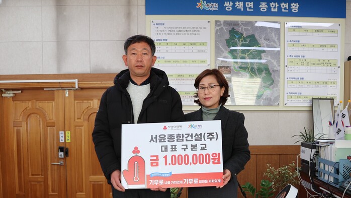 박은숙 면장은 “이웃을 위하는 따뜻한 마음으로 나눔을 실천해주신 서윤종합건설(주) 구본교 대표에게 감사드리며, 도움의 손길이 필요한 어려운 이웃에게 소중히 전달하겠다”고 말했다.