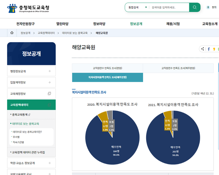 올해 충북교육청은 기존 데이터의 분석과 검토를 통해 데이터를 정선하고 2022년도 교육정책 데이터의 현행화를 추진했으며, 공개대상을 직속기관까지 확대해 충북교육청에서 추진하는 교육정책 사업 정보를 제공하고 있다.