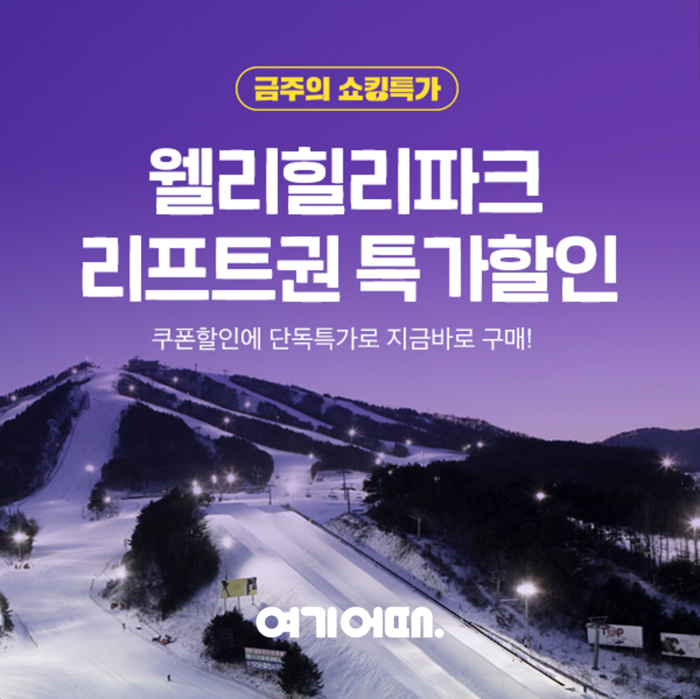 이번주는 스키장 리프트권이 출격했다. 웰리힐리파크와 소노벨 비발디파크 리프트권을 반값 할인한다. 특가에 쿠폰을 적용하면, 최저 3만3,000원에 1인 리프트권을 구매할 수 있다. 차주는 제주 여행 필수 코스인 아쿠아플라넷 제주, 서울 야경 감상 스폿인 N서울타워 입장권을 준비했다.