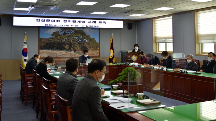 합천군의회(의장 배몽희)는 27일 군의원 및 소속 직원을 대상으로 정치관계법 사례교육을 실시했다.