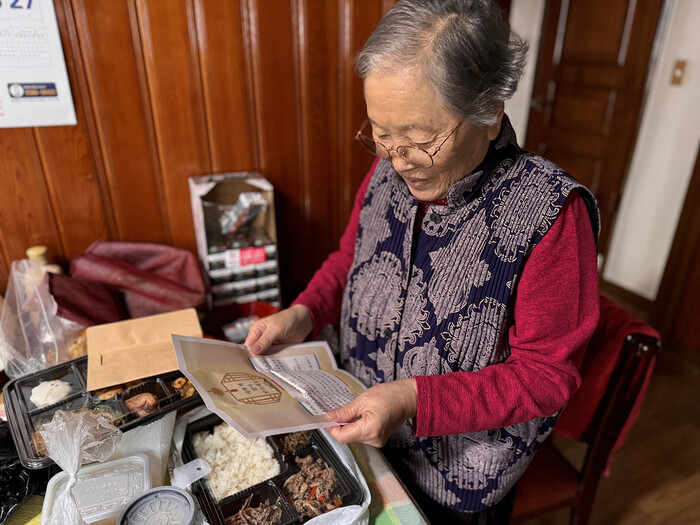 | ▲ 양천구, 지난 설명절 ‘한상더함’ 명절특식을 받고 있는 어르신 (사진 = 양천구청 제공) |