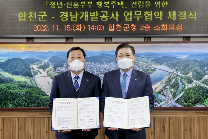 김윤철 군수는 “이번 MOU 체결로 합천읍의 정주 여건을 개선하고 젊은층에 안정적인 주거 환경을 제공할 수 있을 것으로 기대한다”며 “대외적으로 젊고 역동적인 이미지 부각을 통해 지방소멸에 적극 대응할 수 있는 기틀을 마련하게 되어 기쁘게 생각한다”고 말했다.김권수 경남개발공사 사장은 “청년 신혼부부 주거안정을 위해 주도적 역할을 수행하며 행복주택 건립사업 추진에 상호 협력해서 합천군민을 위한 완벽한 공사로 좋은 임대주택 모델을 함께 만들어 가겠다”고 화답했다.